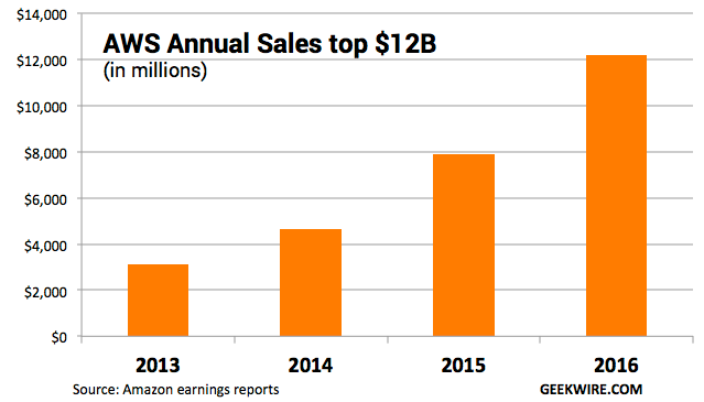 a.AWS hits 12 Billion $ in revenue ~ AWS revenue grew 55% last year to meet 12 Bn $
