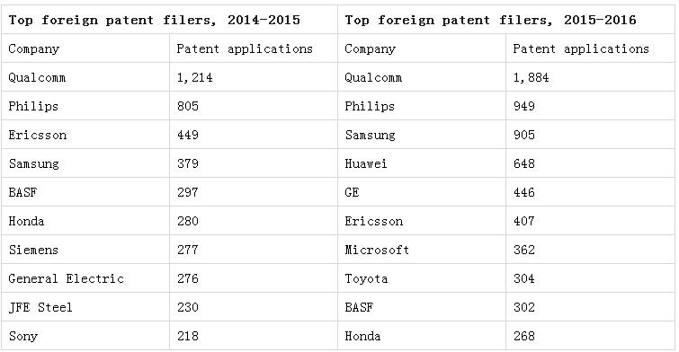 India’s Controller General of Patents, Designs and Trademarks (CGPDT) released its annual report for the 2015-2016 fiscal year last week, and the results showed a 10% jump in applications, reversing two straight years of slight decline. The list of top applicants for the first time included a Chinese company, as Huawei at least tripled its filings in India – which continues to be a market of great risk and great opportunity for Chinese smartphone makers.