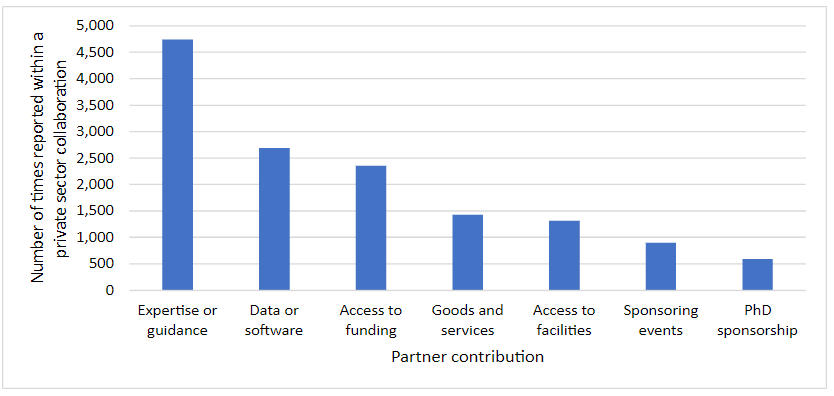 sharing of expertise, experience, knowledge and other types of guidance was the most commonly reported contribution from private companies in collaborations(Figure 21)