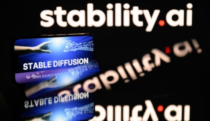 This picture taken on April 26, 2023, in Toulouse, France, shows screens displaying the logo of Stable Diffusion, an artificial intelligence application, created by StabilityAI.