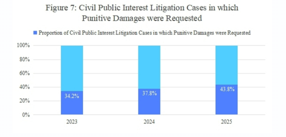 4.2 Steadily Exploring IPR Civil Public Interest Litigation. Procuratorates filed 74 civil public interest litigation cases, instituted 48 lawsuits with the people's courts, and included punitive damages claims in 21 cases, accounting for 43.8% of the total civil public interest litigation lawsuits filed. We decided to support civil public interest litigation in 4 cases.