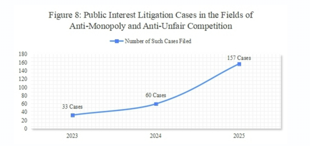 4.3 Strengthening Supervision over Anti-Monopoly and Anti-Unfair Competition. Procuratorates filed 157 public interest litigation cases in the fields of anti-monopoly and anti-unfair competition, a year-on-year increase of 1.6 times. Among these, 31 cases were in the anti-monopoly field and 126 cases were in the anti-unfair competition field.