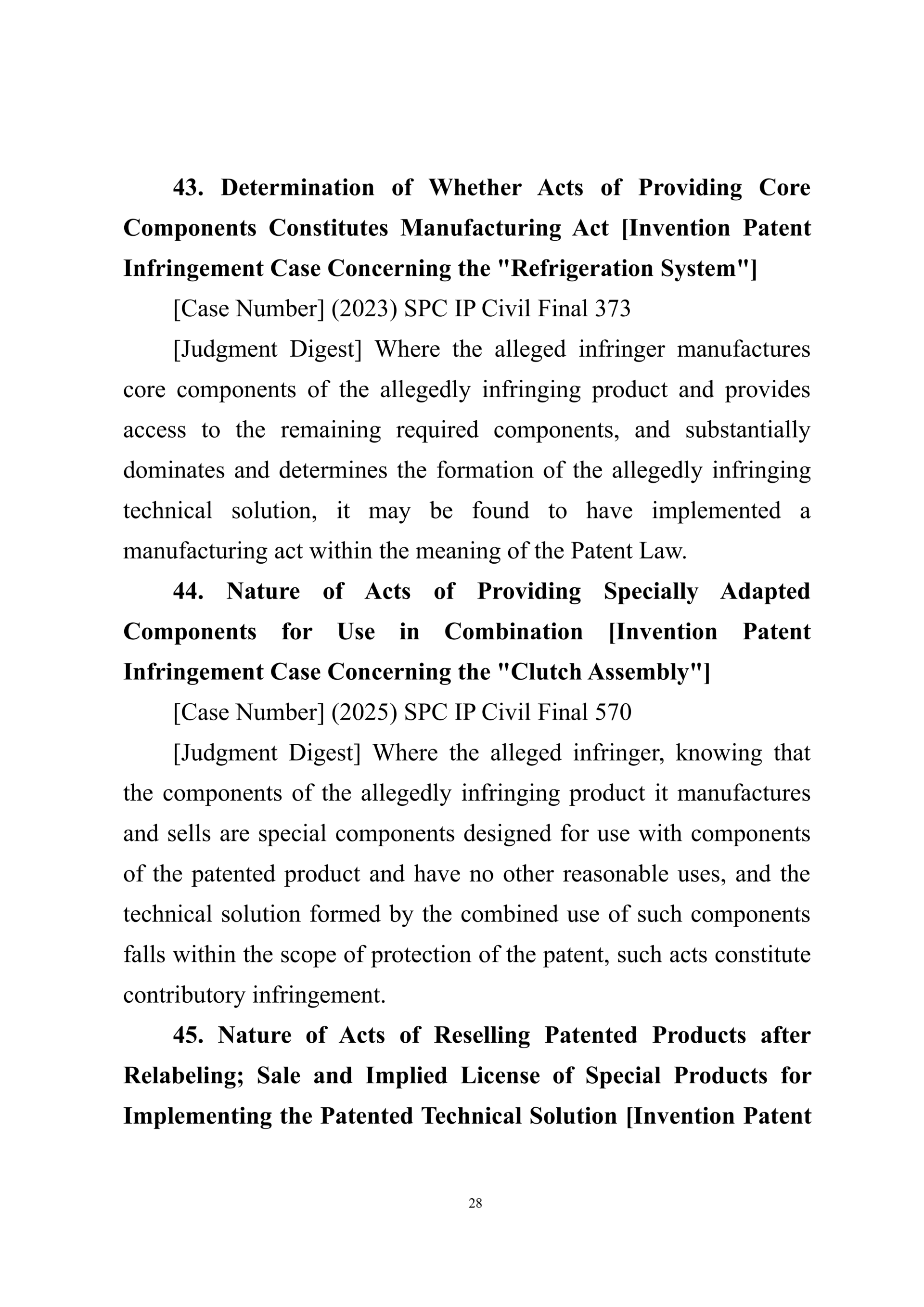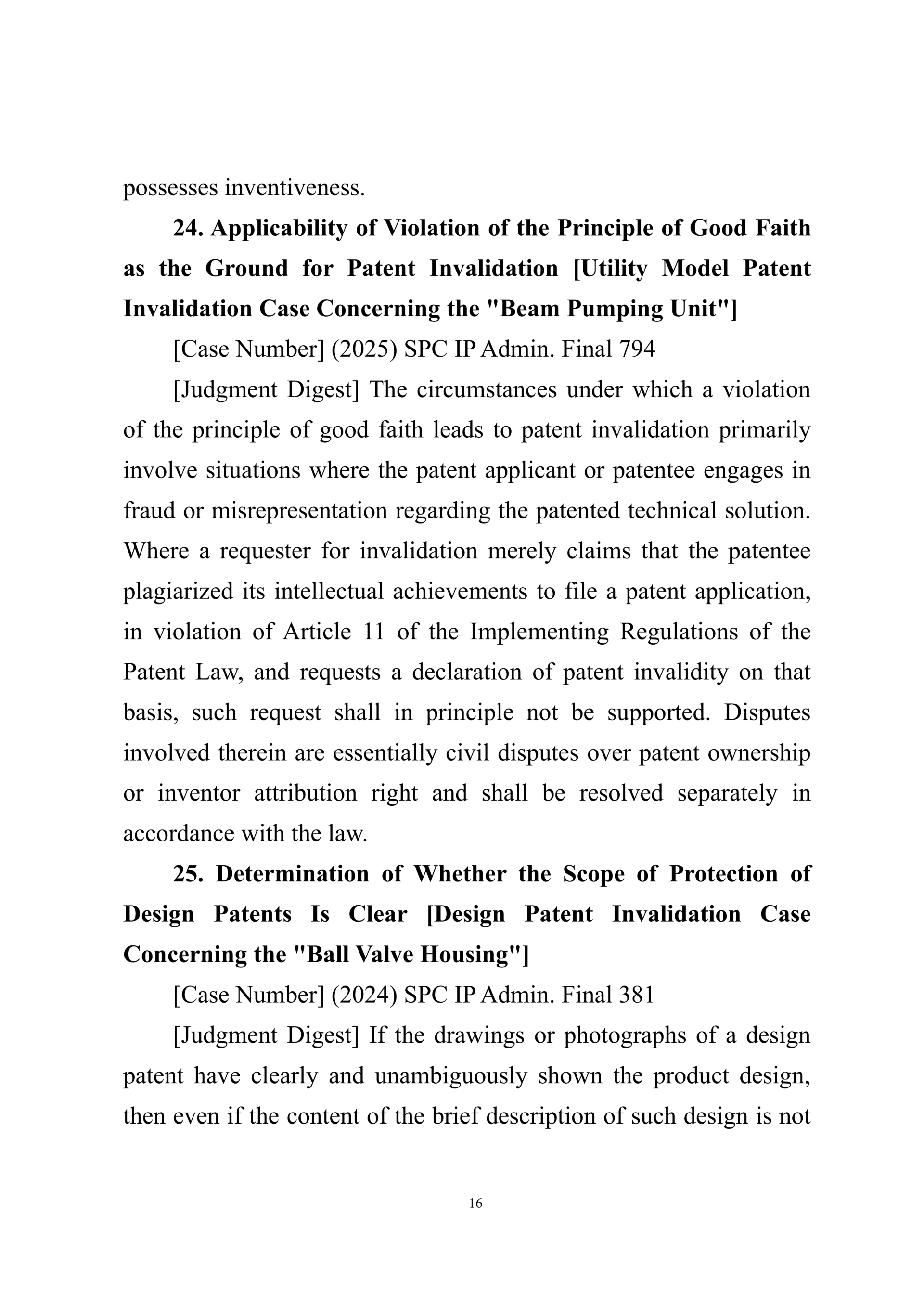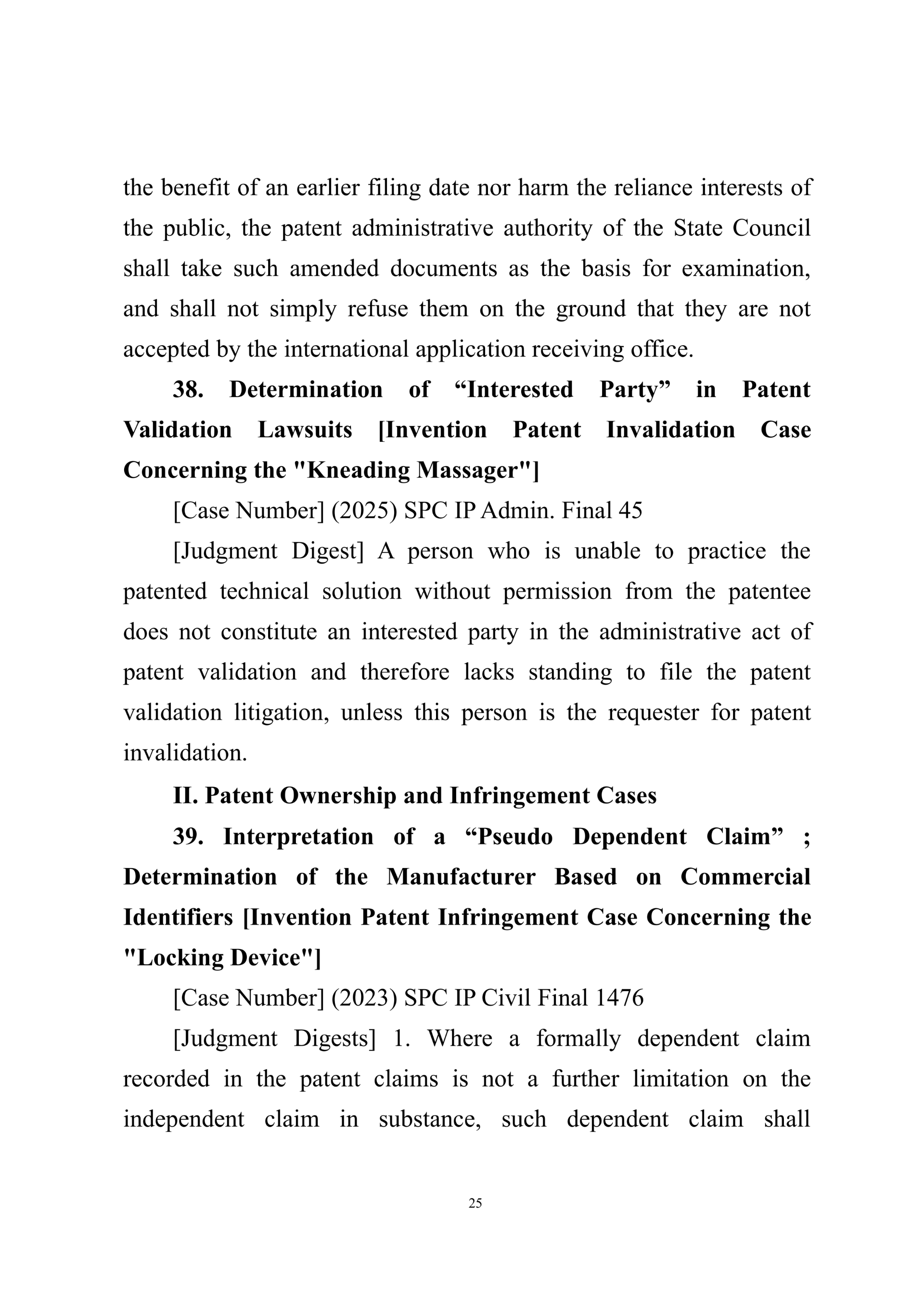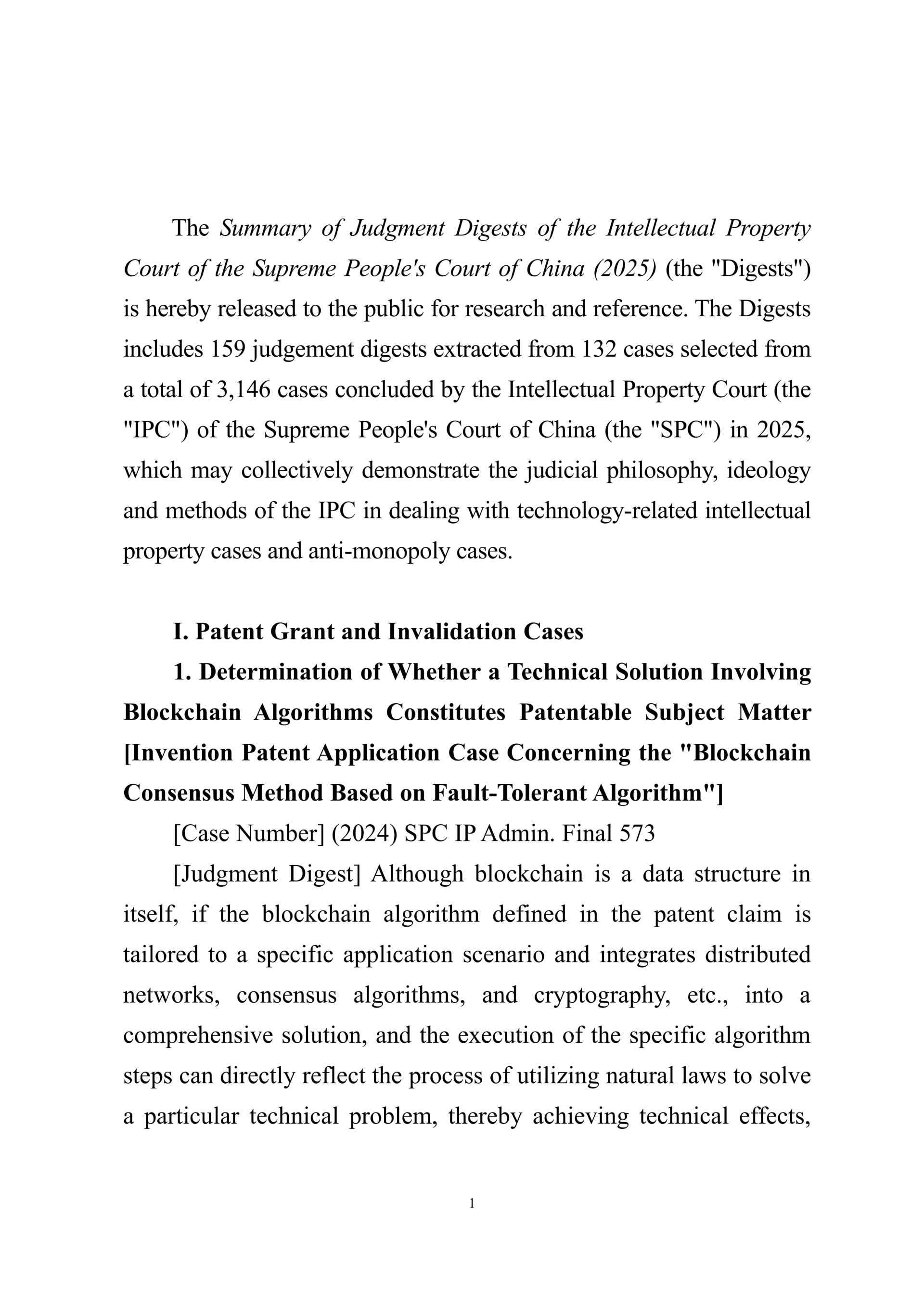 Summary of Judgment Digests ofthe Intellectual Property Court ofthe Supreme People's Court of China(2025)