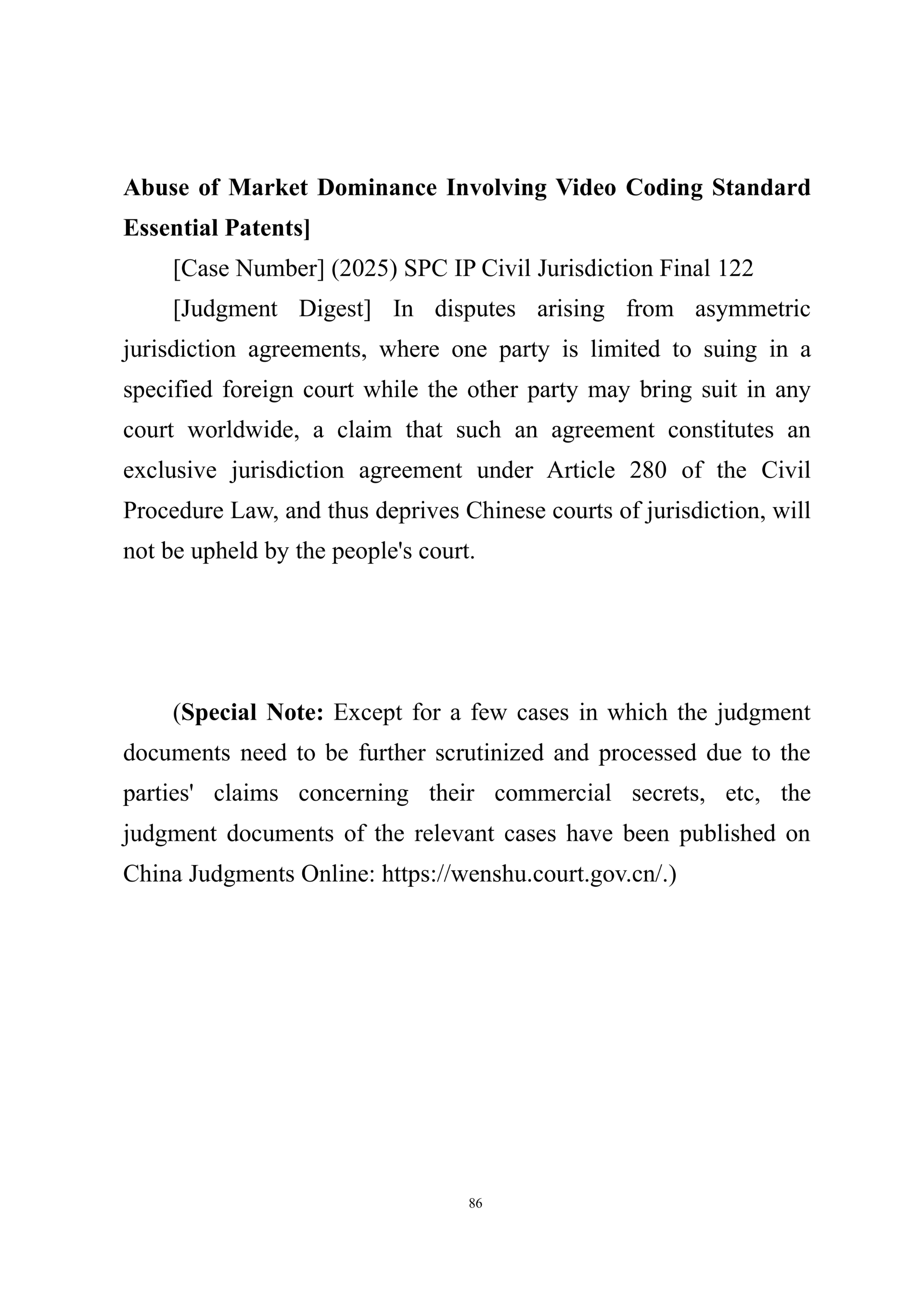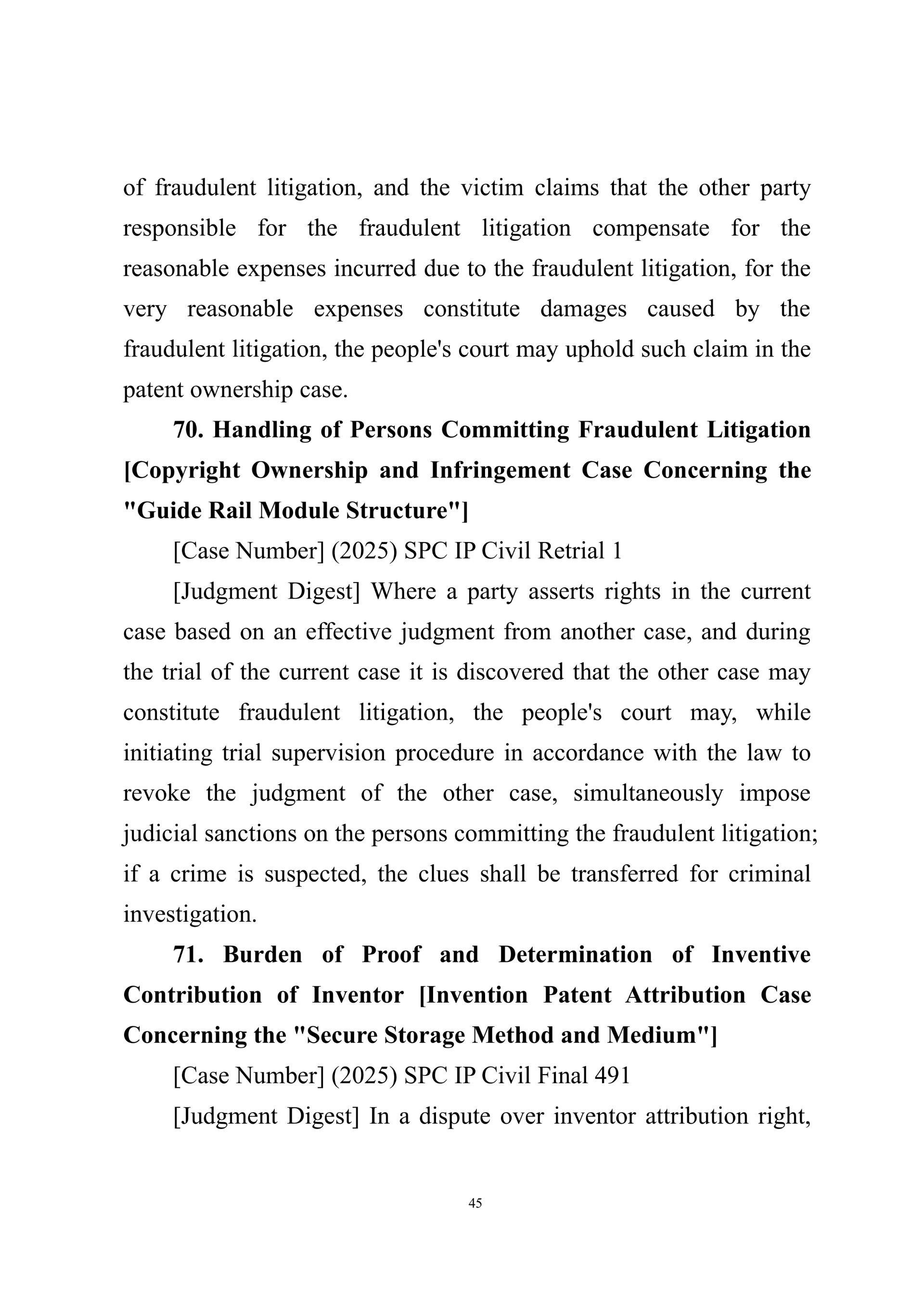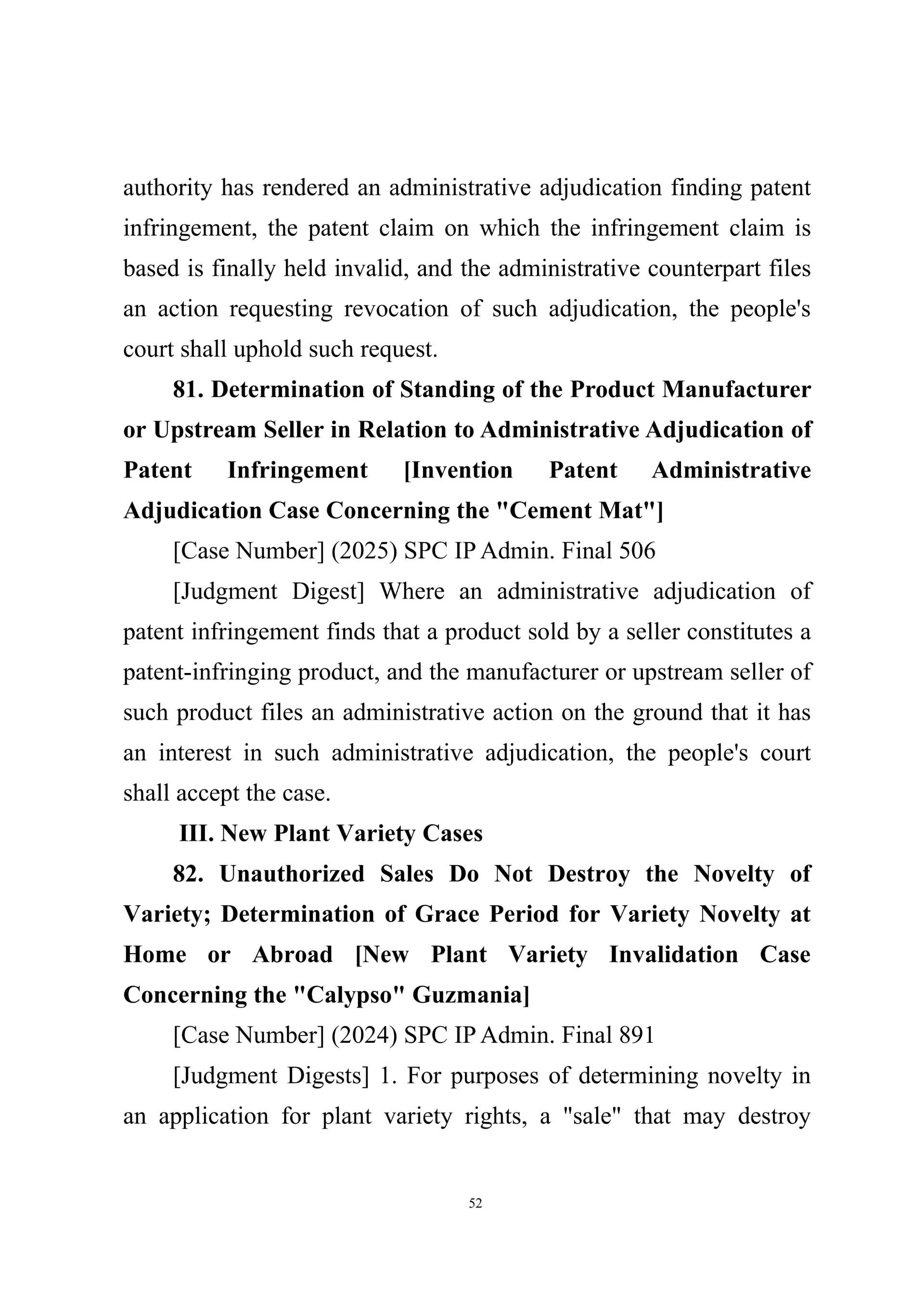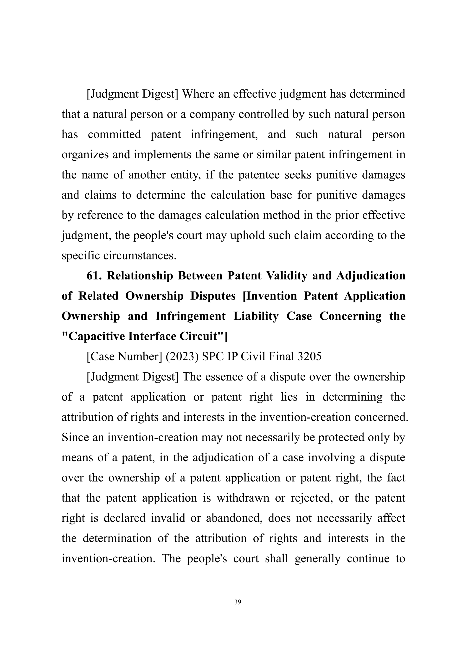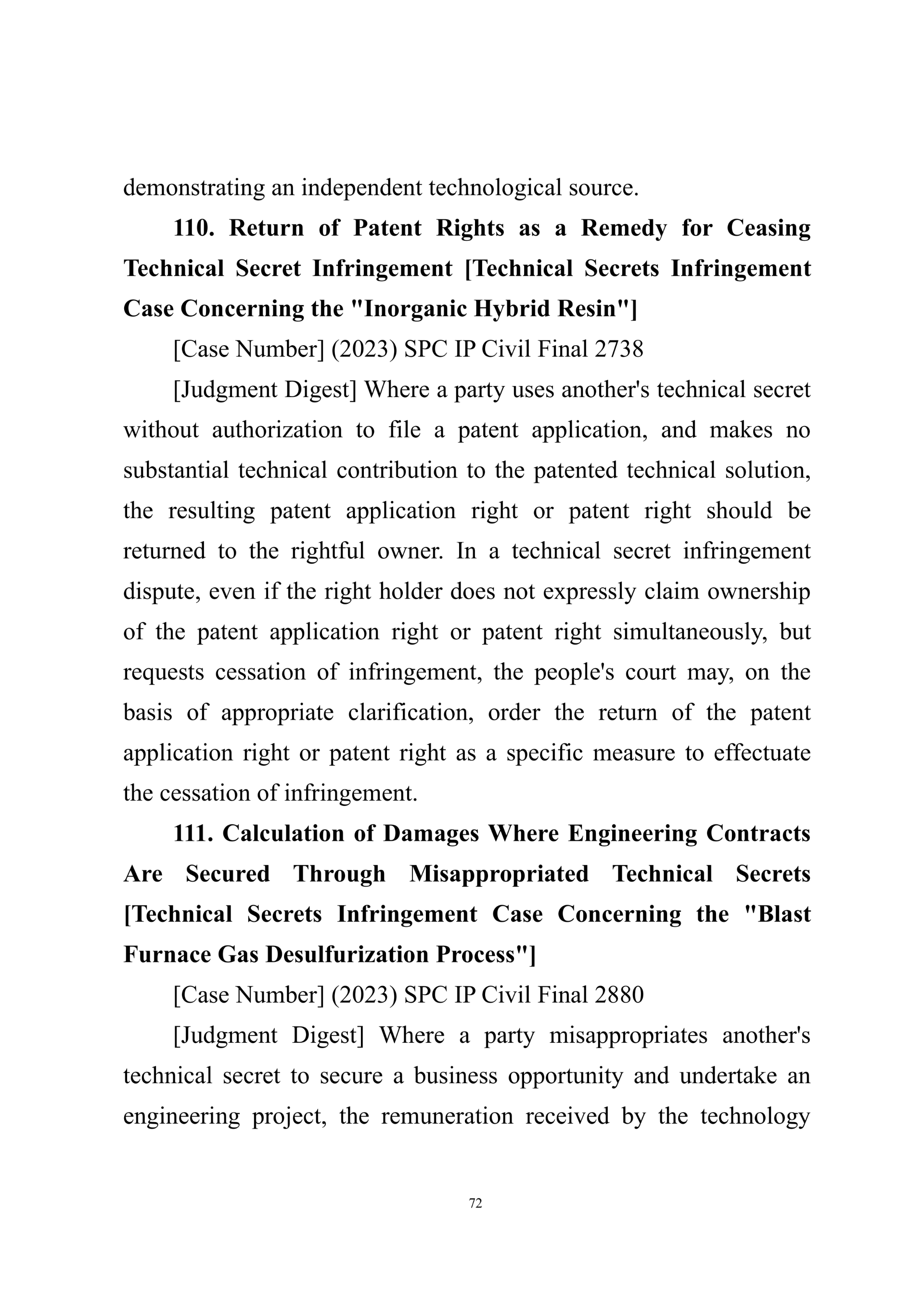 Summary of Judgment Digests ofthe Intellectual Property Court ofthe Supreme People's Court of China(2025)