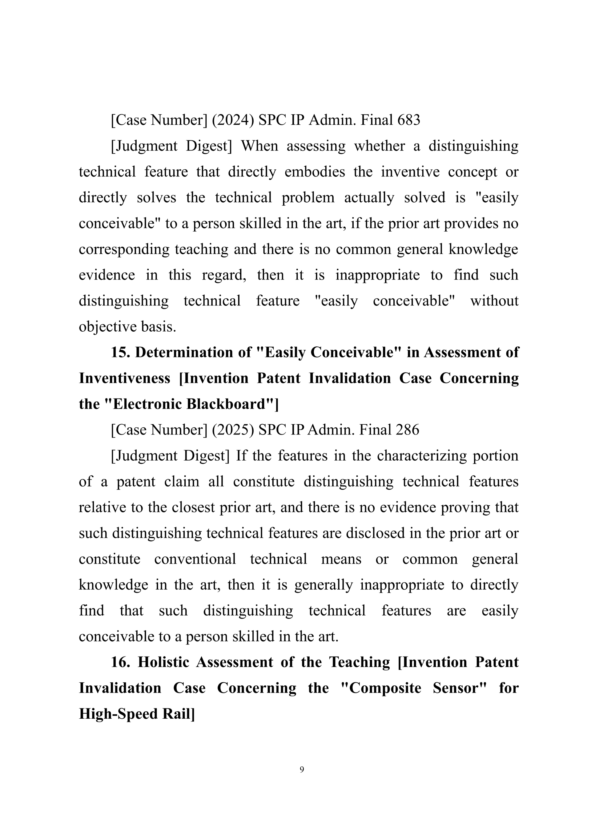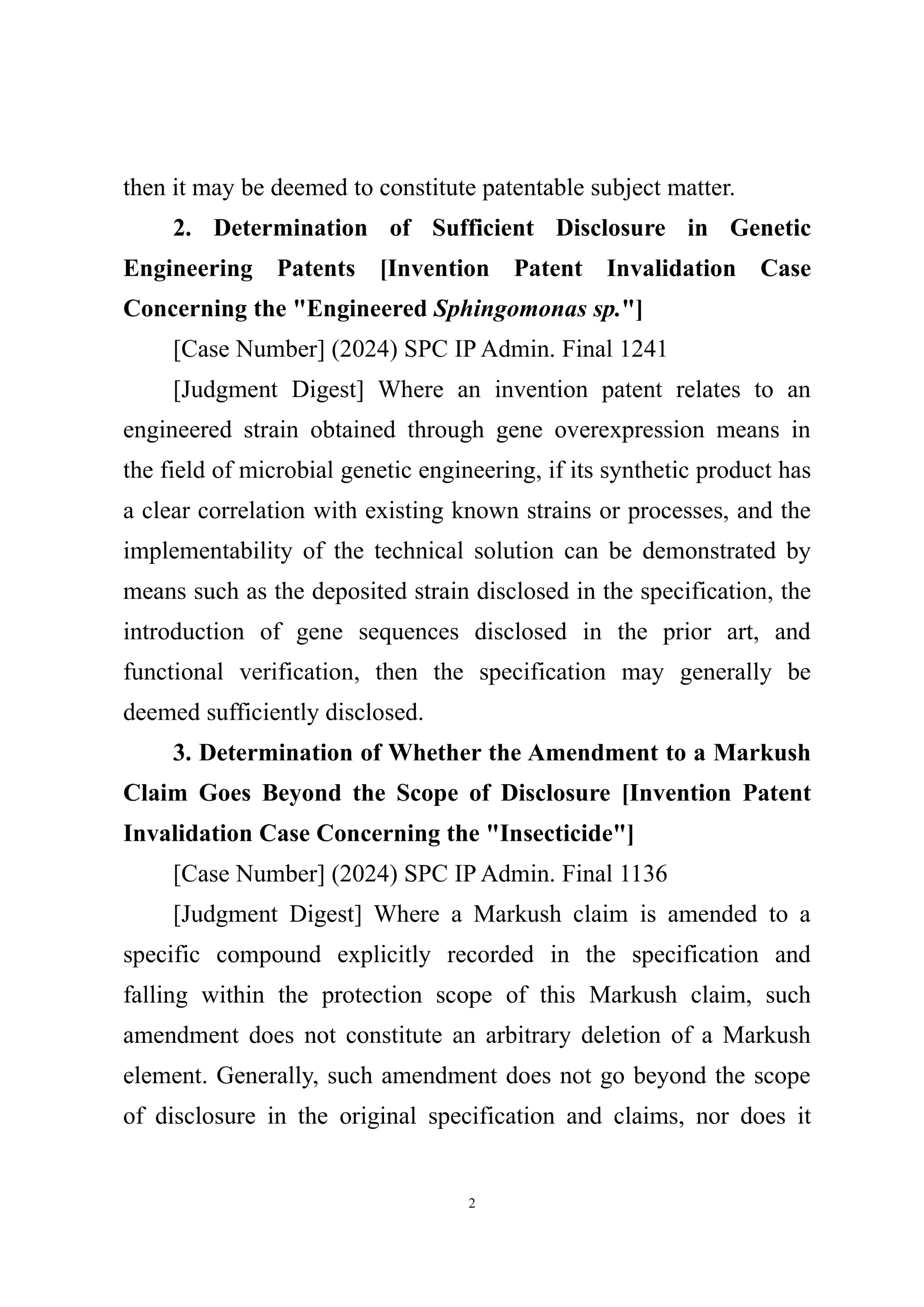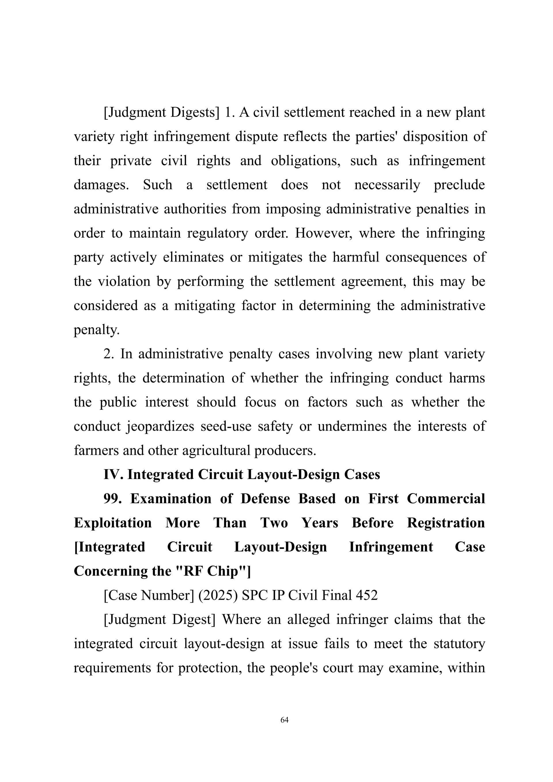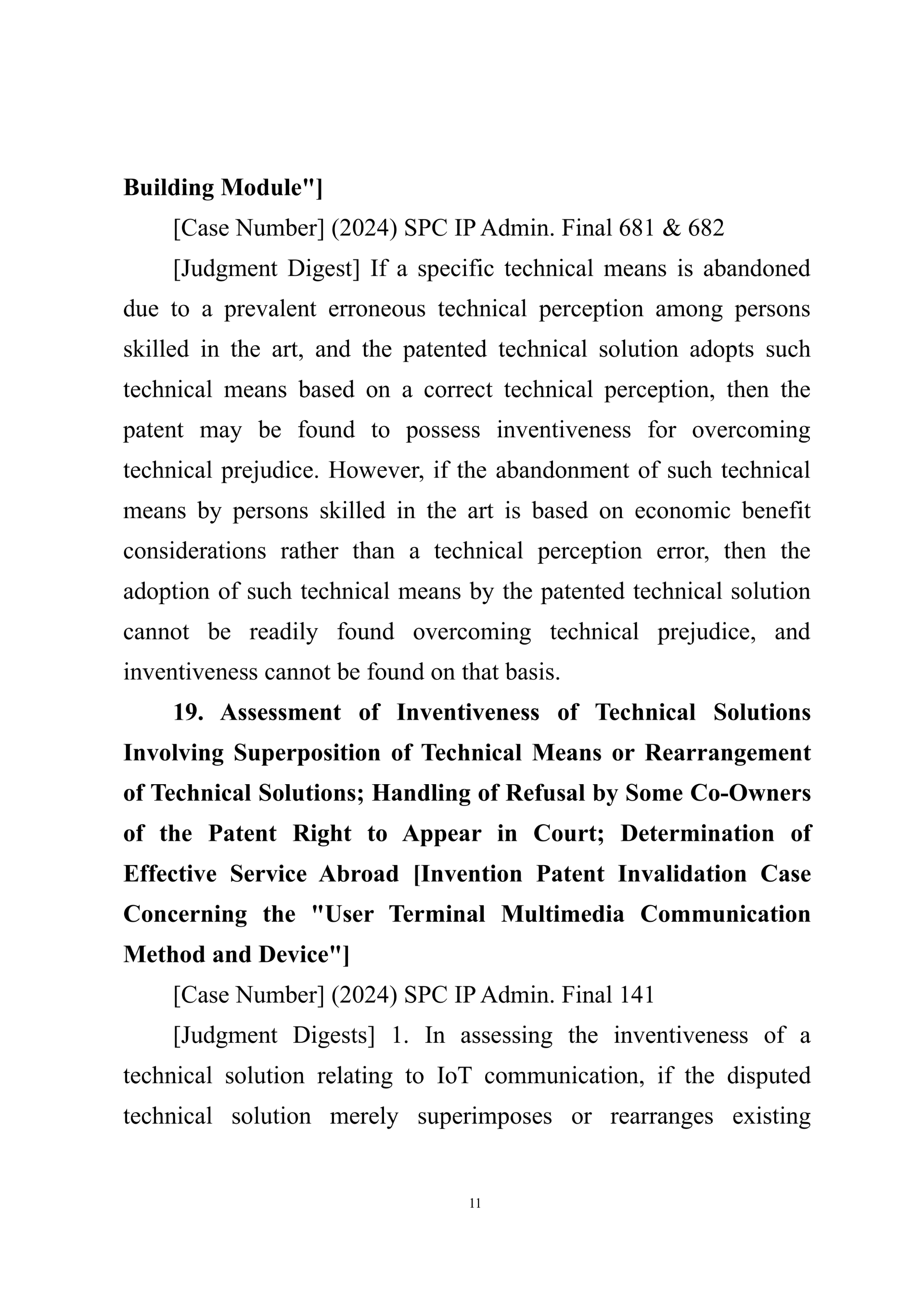 Summary of Judgment Digests ofthe Intellectual Property Court ofthe Supreme People's Court of China(2025)