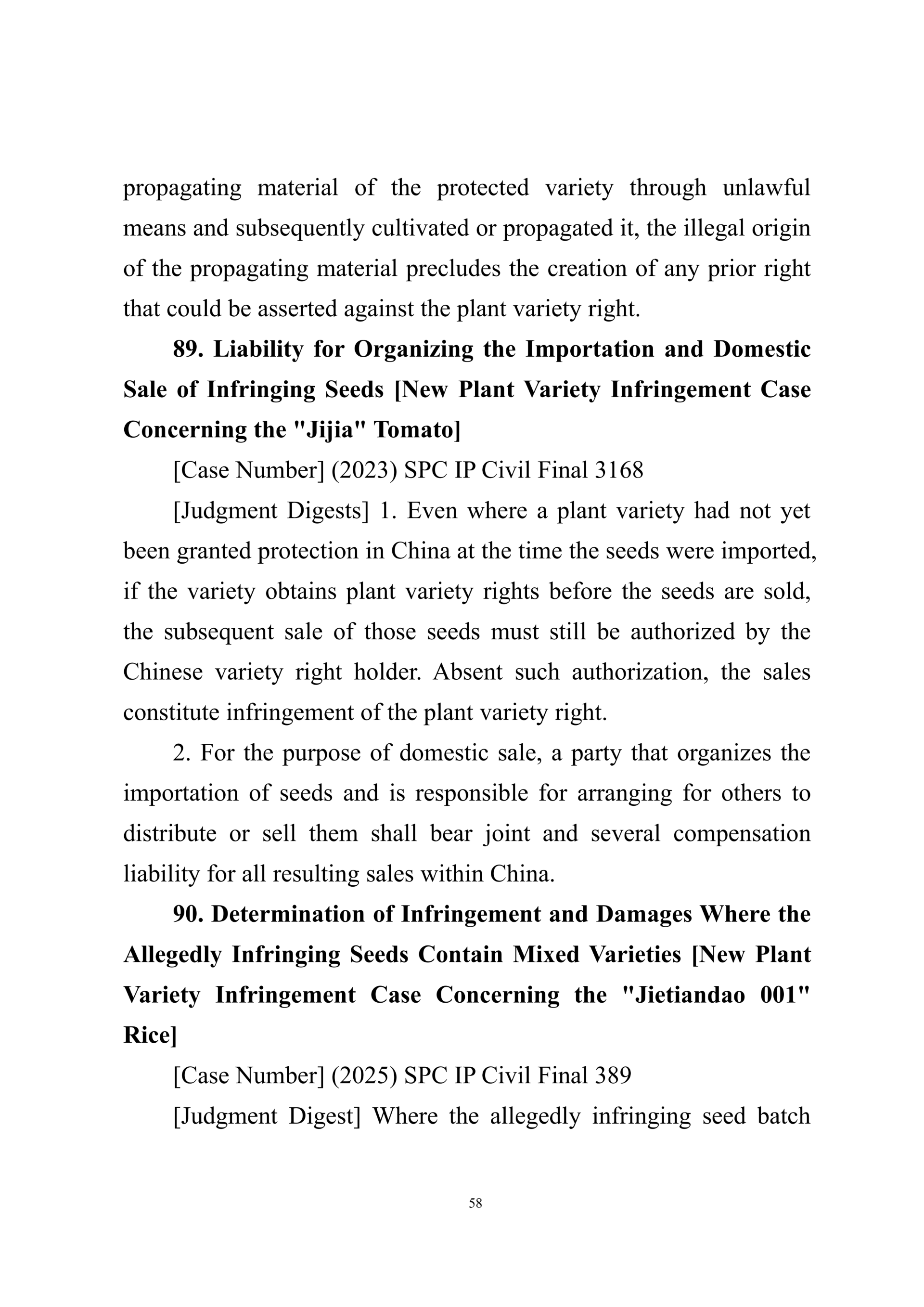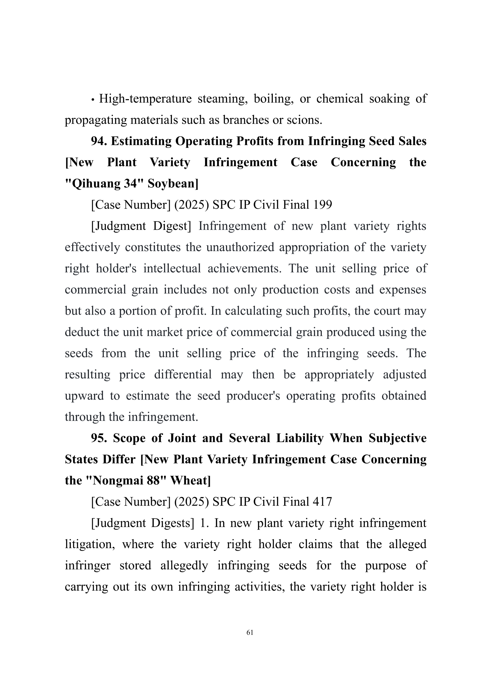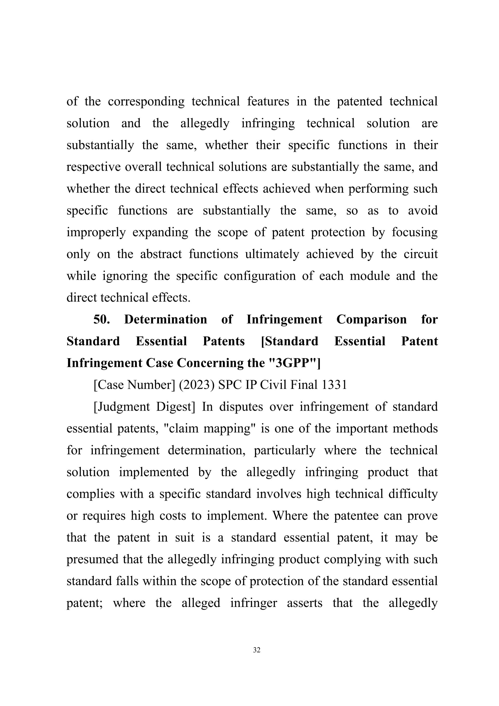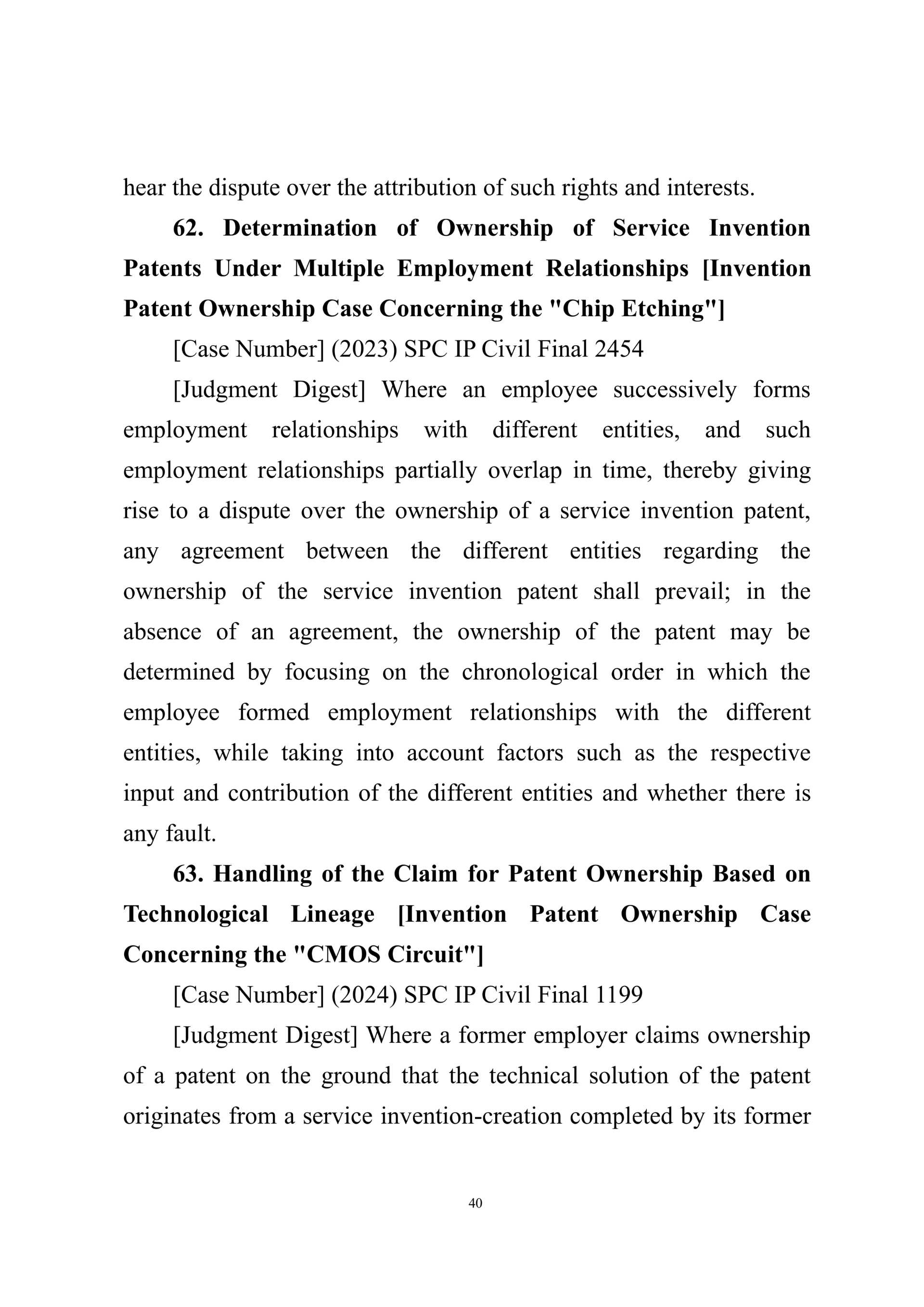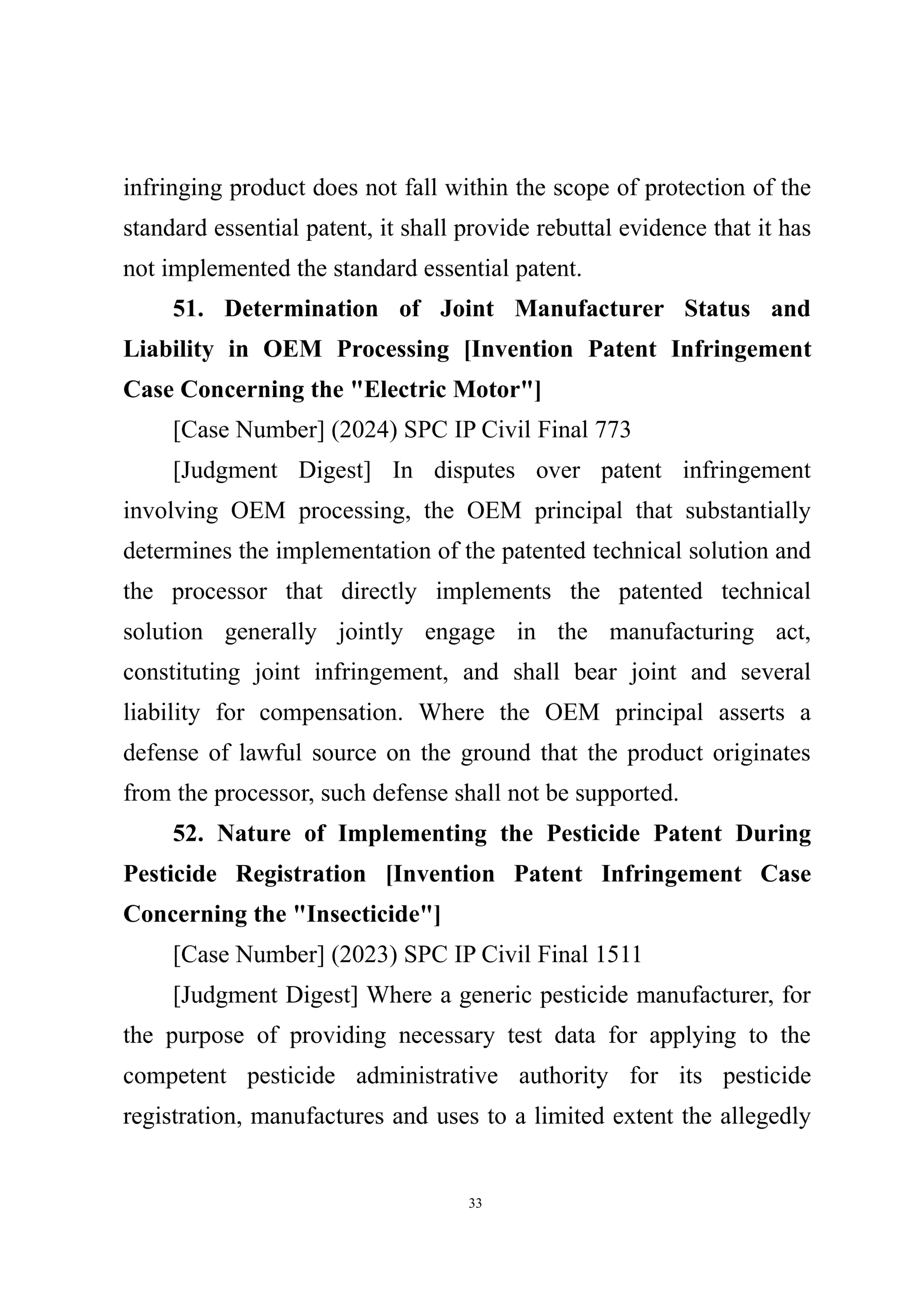 Summary of Judgment Digests ofthe Intellectual Property Court ofthe Supreme People's Court of China(2025)