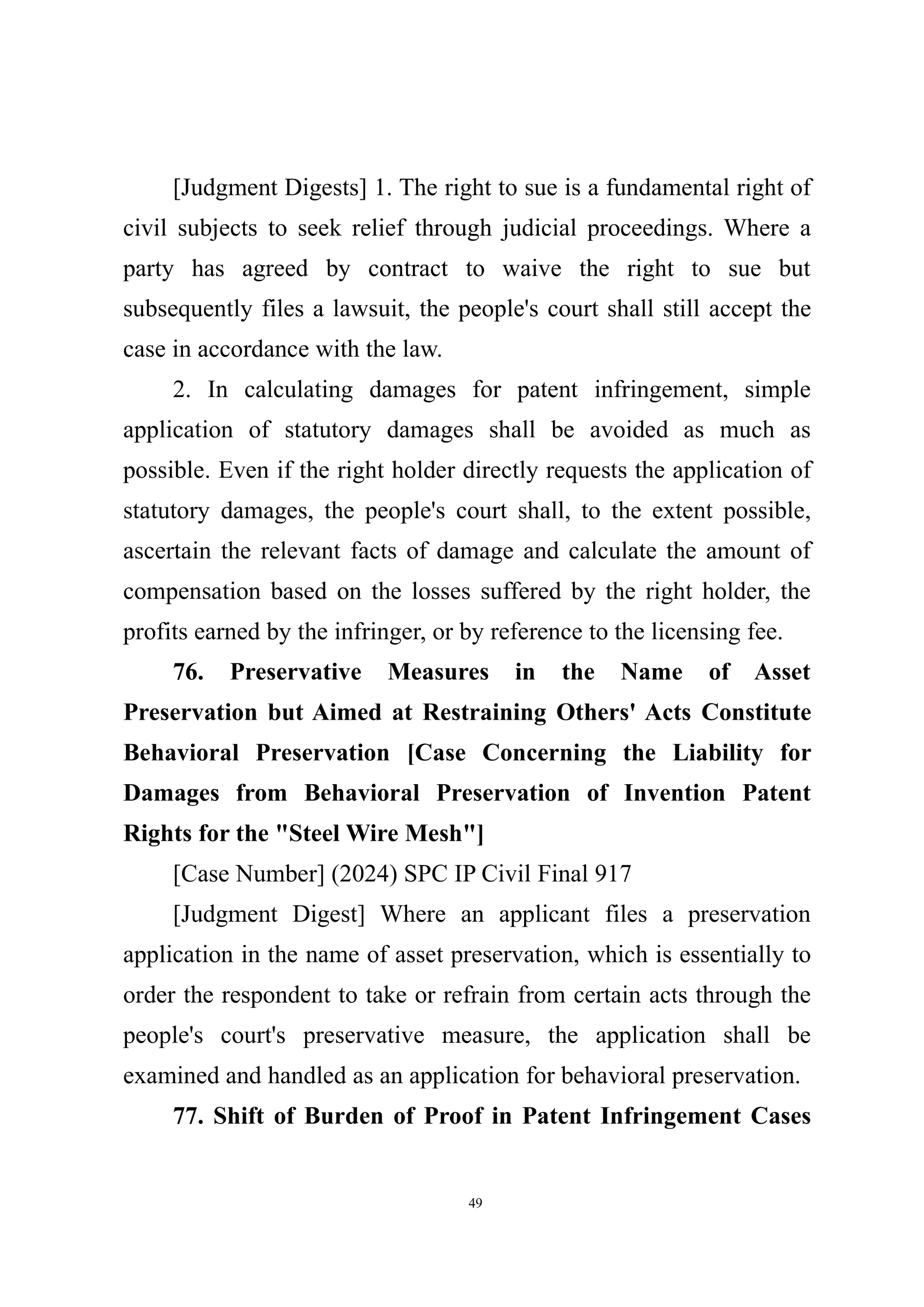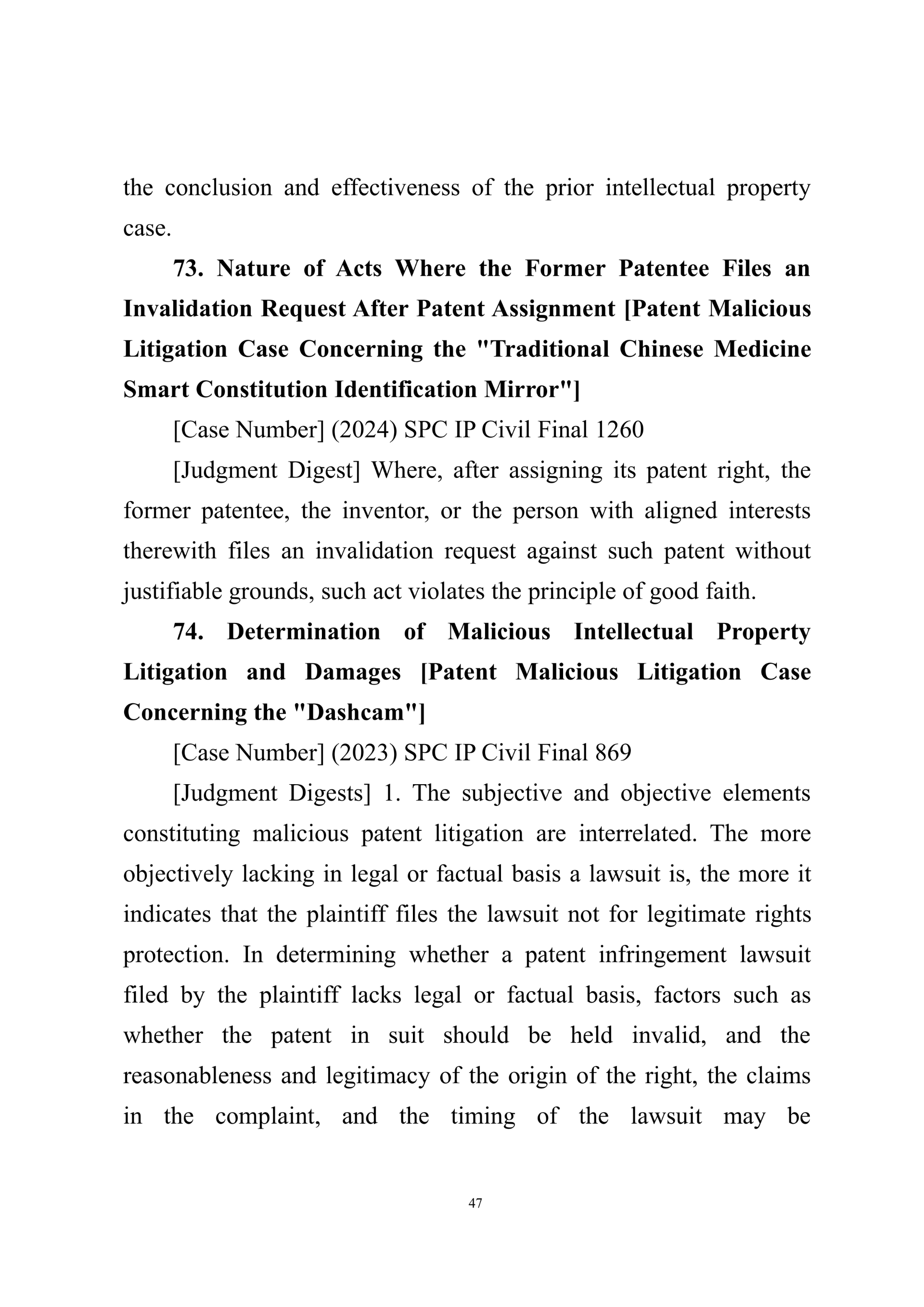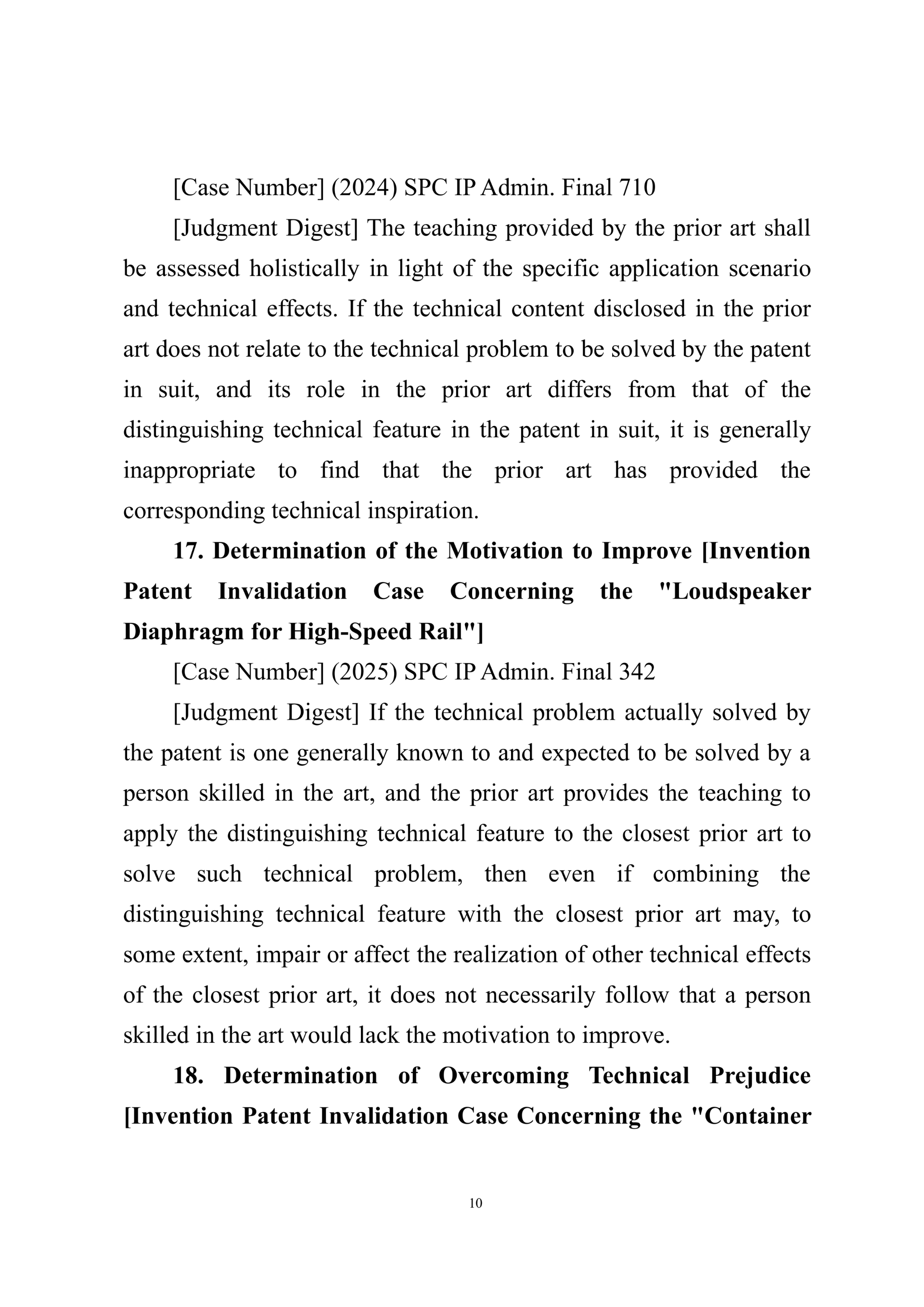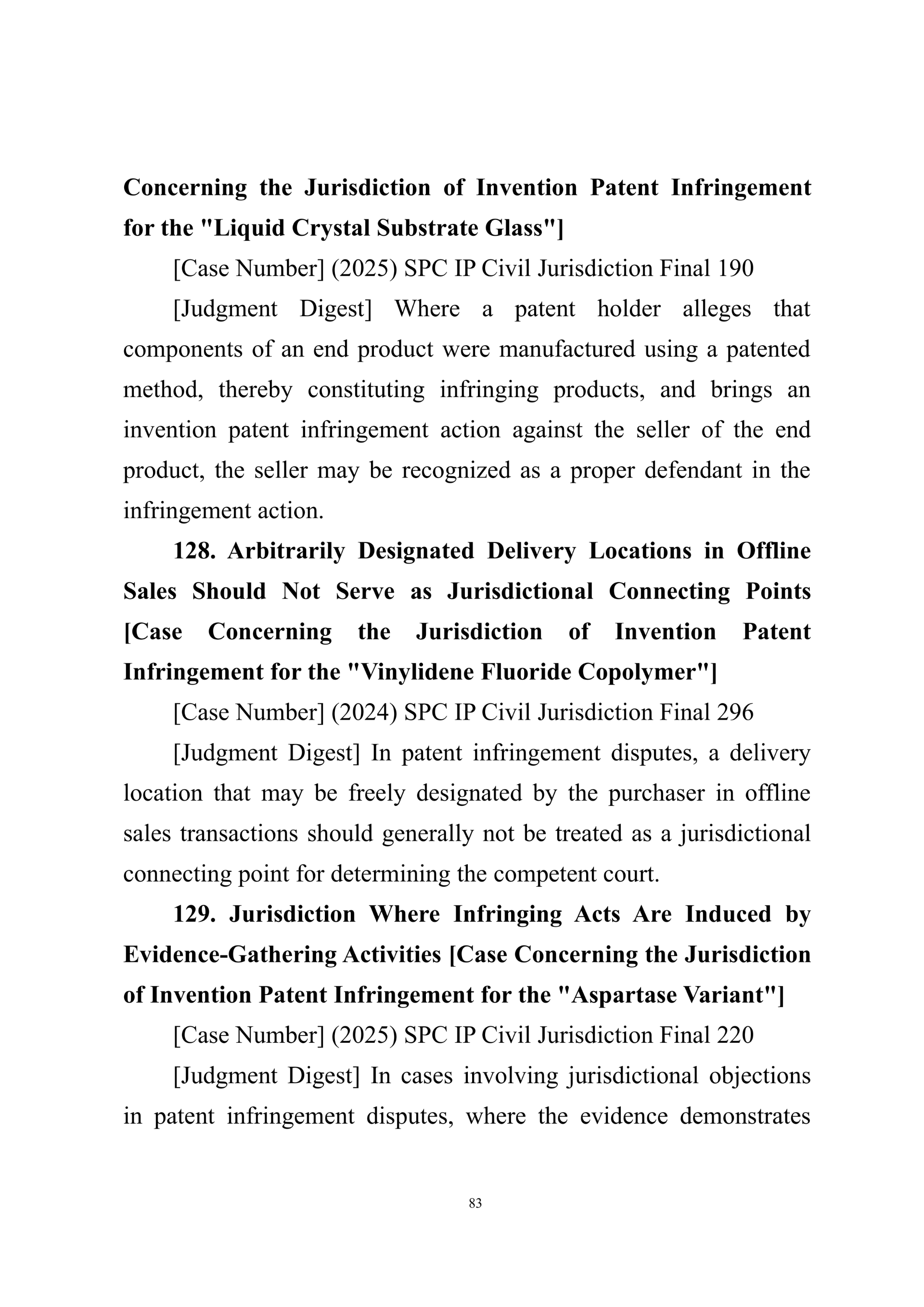 Summary of Judgment Digests ofthe Intellectual Property Court ofthe Supreme People's Court of China(2025)