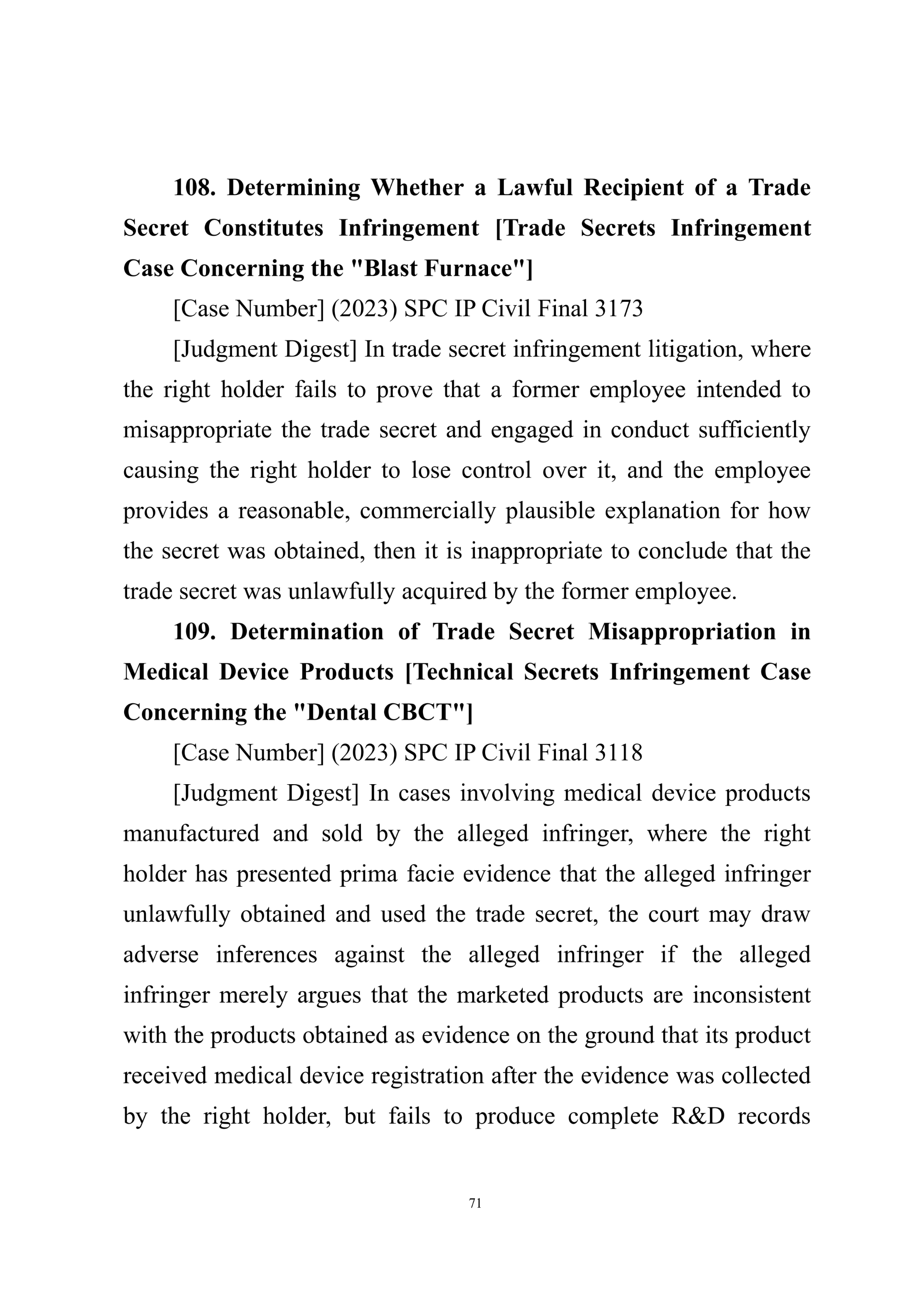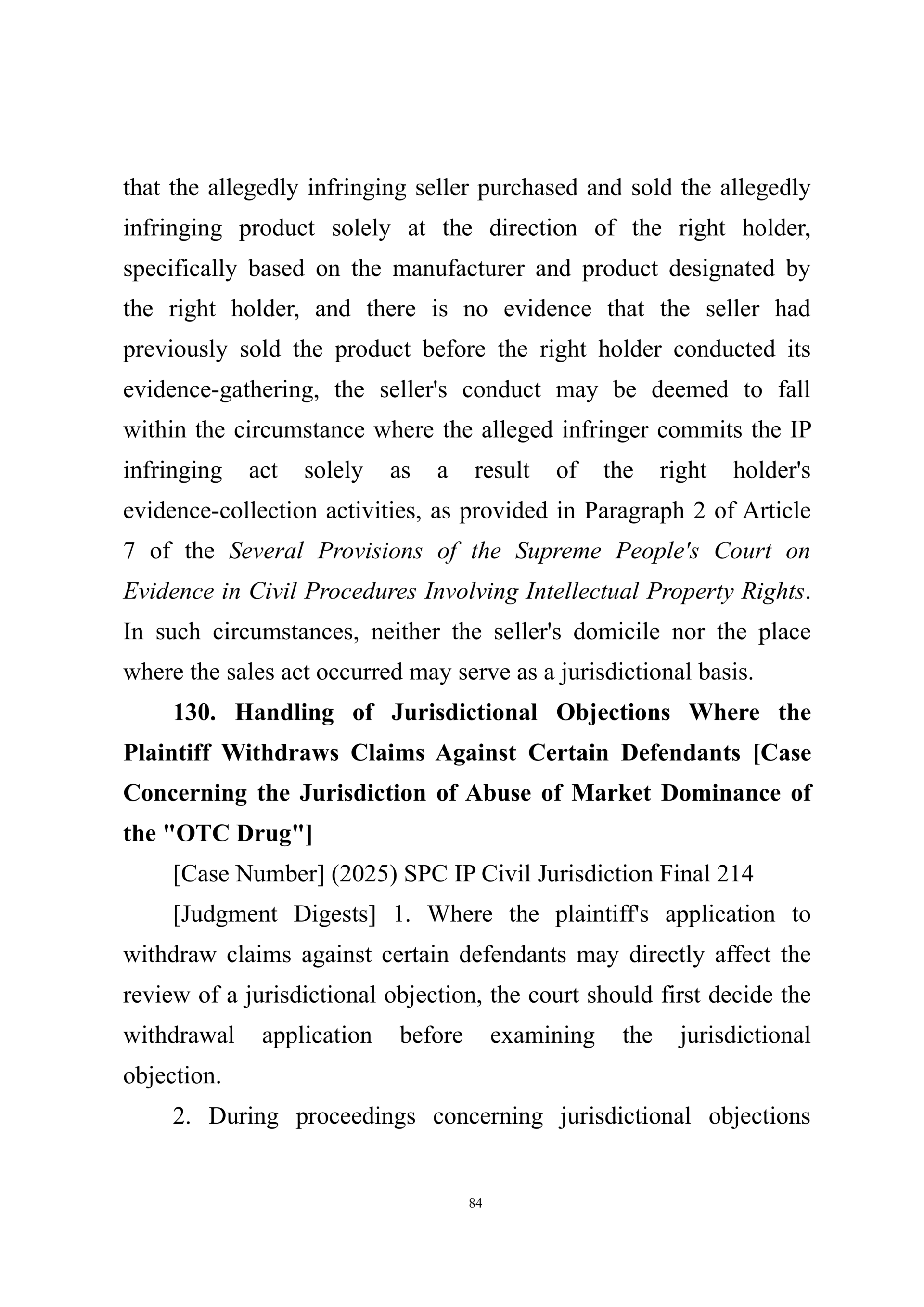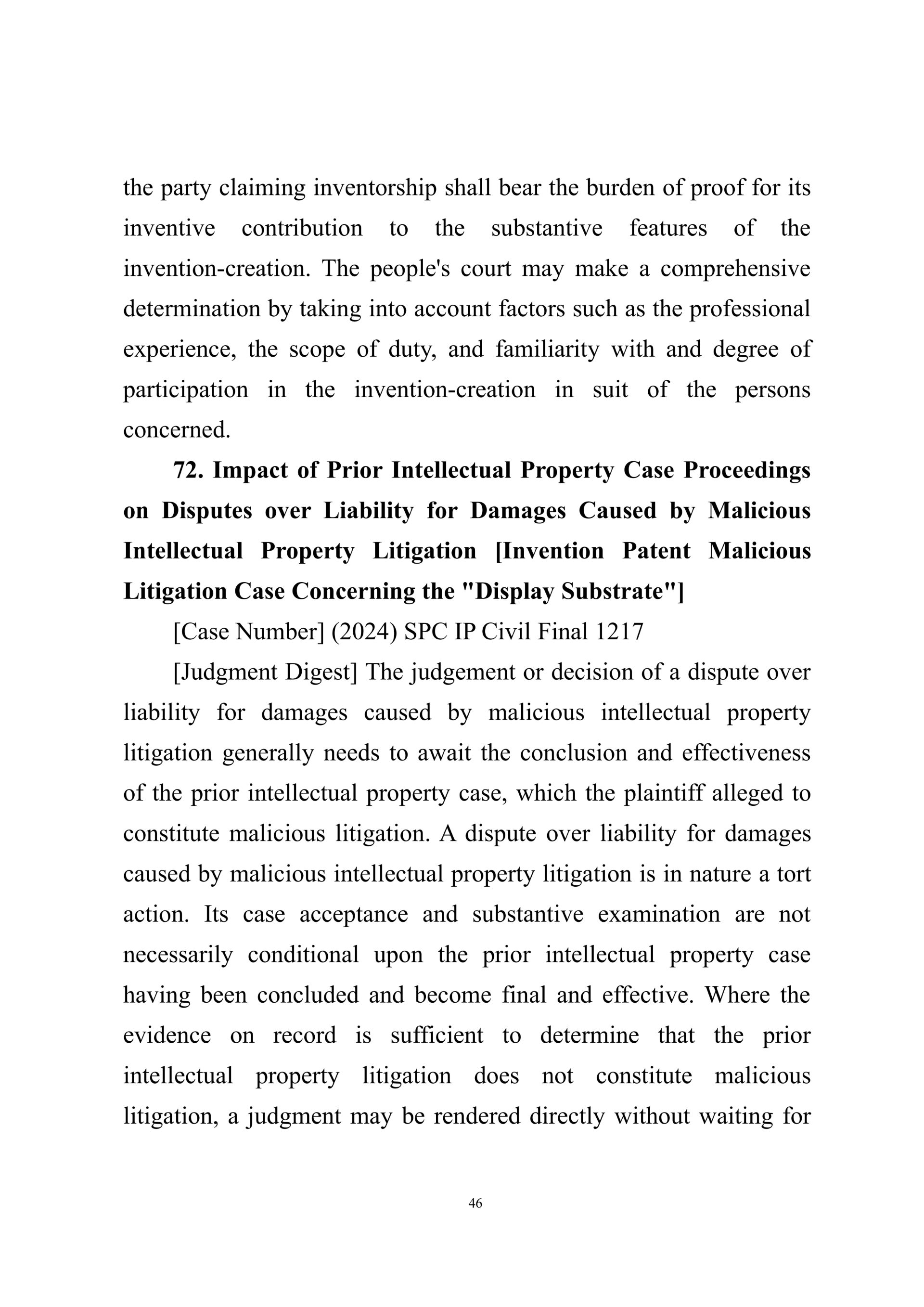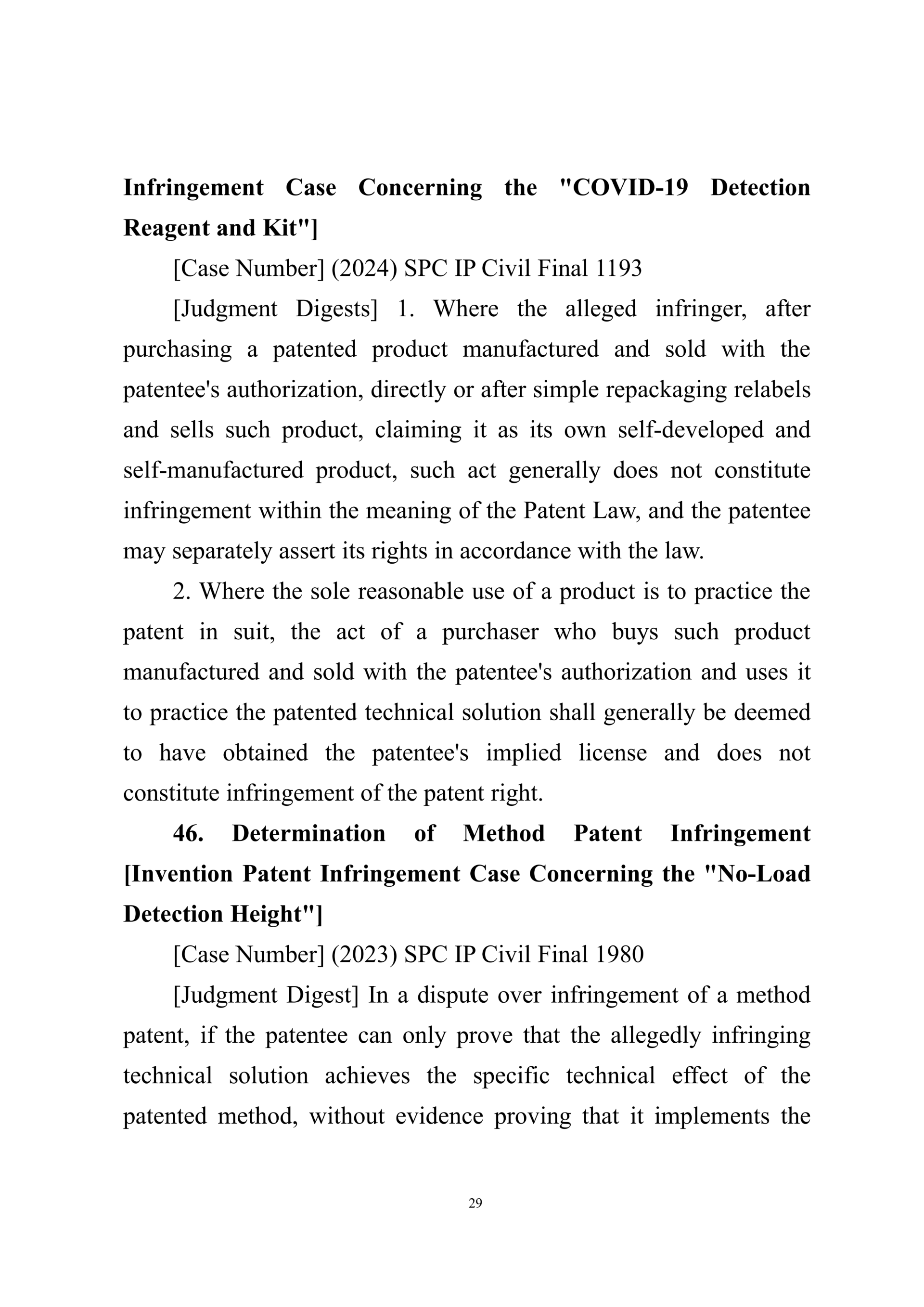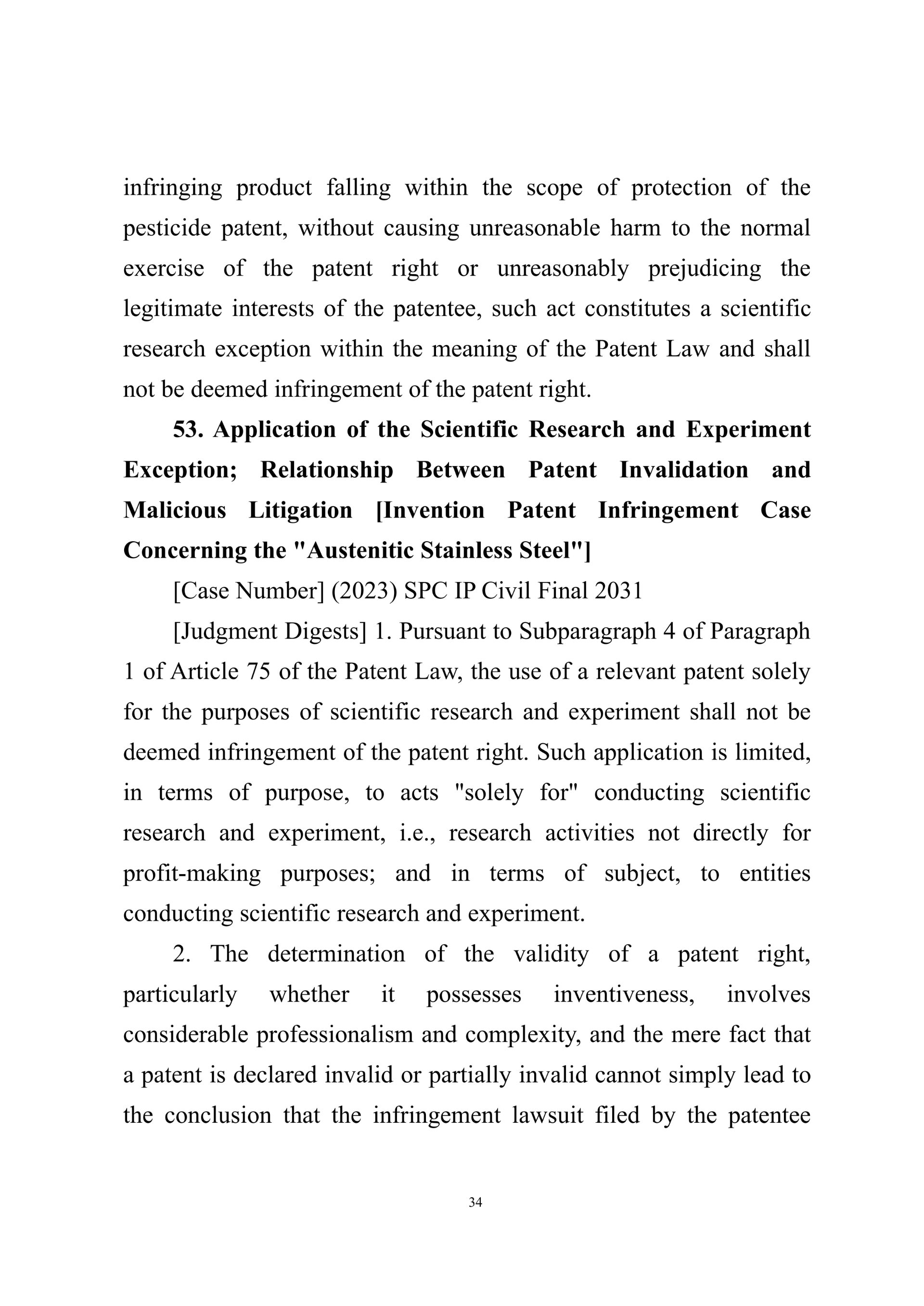 Summary of Judgment Digests ofthe Intellectual Property Court ofthe Supreme People's Court of China(2025)